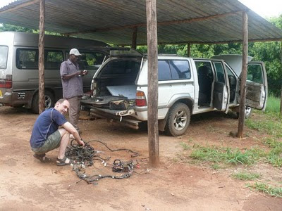 Crossing very unstable and dangerous bridges are necessary to get to isolated bush schools we have started. The bridges are basically constructed out of wood and filled up with sand. Needless to say in the rainy season it becomes slippery …. and well … not so safe. It does help your prayer life though!
