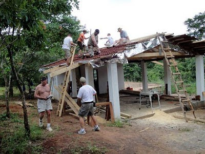 Above: The USA New-Holland team finishing up yet another roof on the new Mercy Air garage. Rick Cogbill is a mechanic and he writes on mechanical engineering for magazines in Canada fixing up mission vehicles. And what a blessing he was!