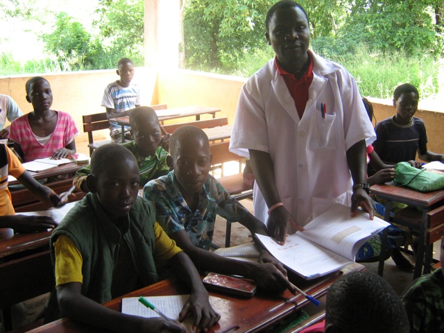 PHOTO: School principal, Joao Feniassi helping grade 5 students.