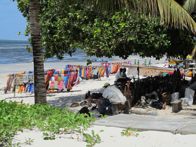 | Beach hawkers can be found everywhere on the coast. Due to the rainy season on hand there is little work on the boats and daily living is earned through the sell of arts and crafts on the beach. |