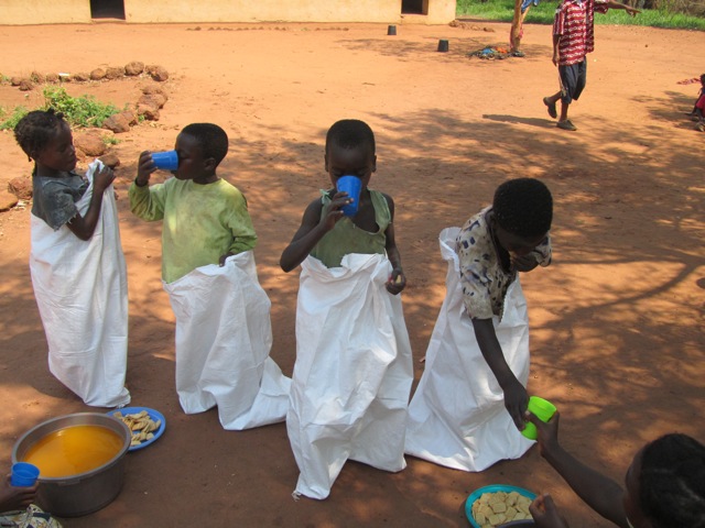 I get on my motorbike to travel the 20 km to our bush school to see how many kids would actually pitch up for the fun and games. To my amazement 179 were waiting on time in the heat for the fun to start. Their anticipation is actually quite contagious. In heat like this water games must be the biggest attraction apart from all the cool drinks and biscuits. Between the games, Bible stories, role playing and fun there was a lot to learn.