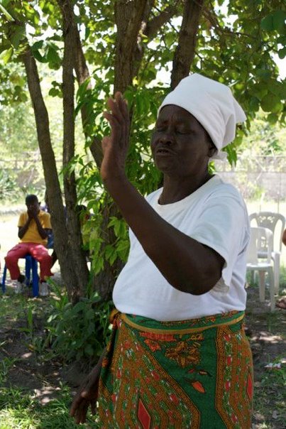 | One of the widows, Mai Vaida who looks after some of our orphans, prays for the food and the event. |