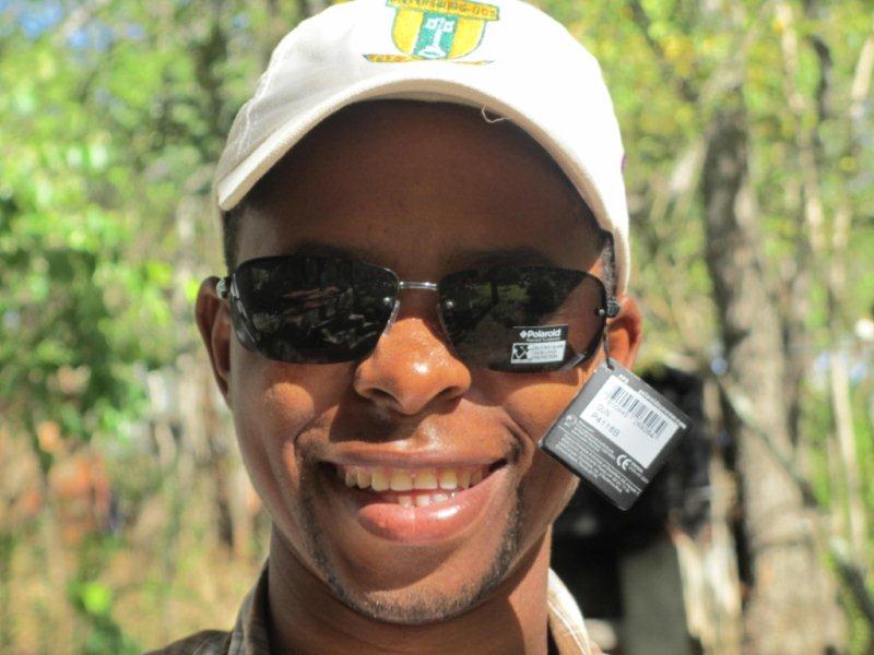 Charles Sixpense was one of the first to receive his special UV tested Brazilian sunglasses. Everyone had much fun as they never owned their own sunglasses.